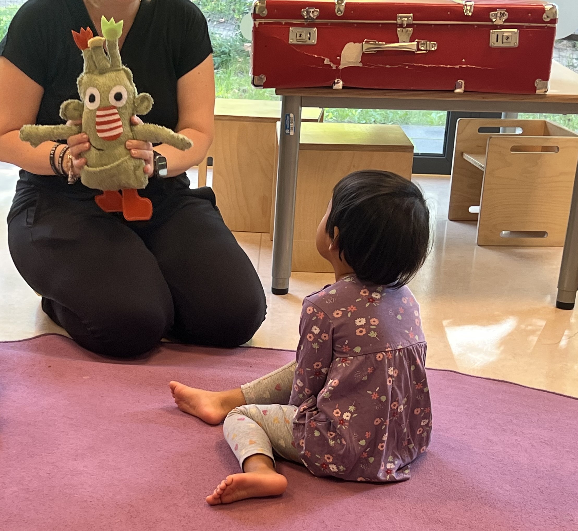 - Acting: Hand puppets are used to act out everyday scenes, e.g., conflicts on the playground or beautiful moments of friendship. The children contribute their own ideas and experience themselves as part of the solution.