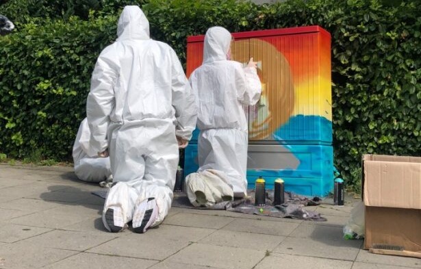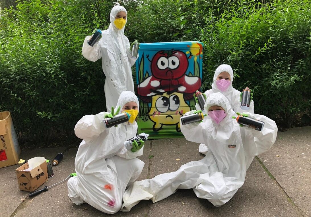 sich gegenseitig und setzten ihre Kreativität in die Tat um. Das Ergebnis konnte sich sehen lassen: Insgesamt wurden 12 Stromkästen künstlerisch gestaltet und verschönert.