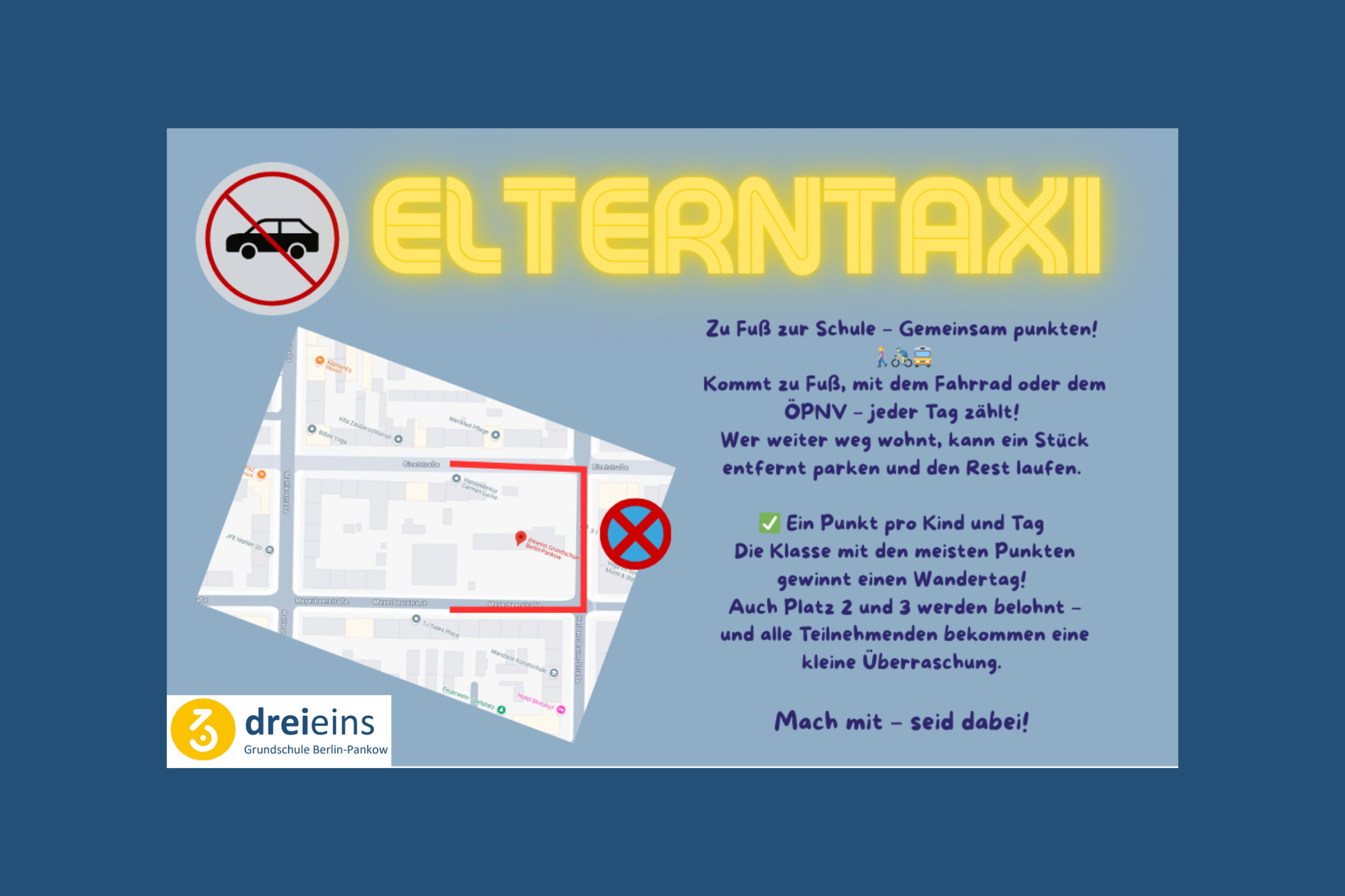 - Auch wer mit den Eltern ein Stück fährt, kann mitmachen – einfach ein paar Straßen vorher aussteigen und das letzte Stück laufen.