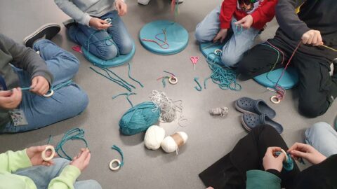 In der 5. Klasse arbeiteten die Kinder in Kleingruppen an der Weihnachtsdekoration für die Bühne. Hier standen Zusammenarbeit, Planung und gemeinsames Entscheiden im Mittelpunkt – Kompetenzen, die weit über das Basteln hinausreichen.
