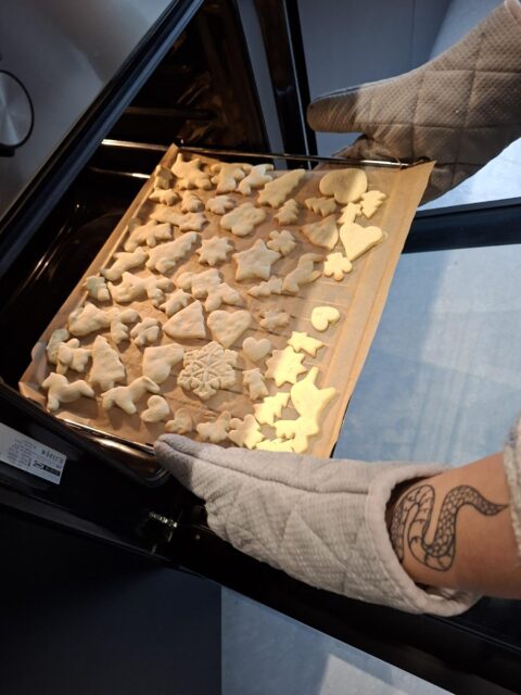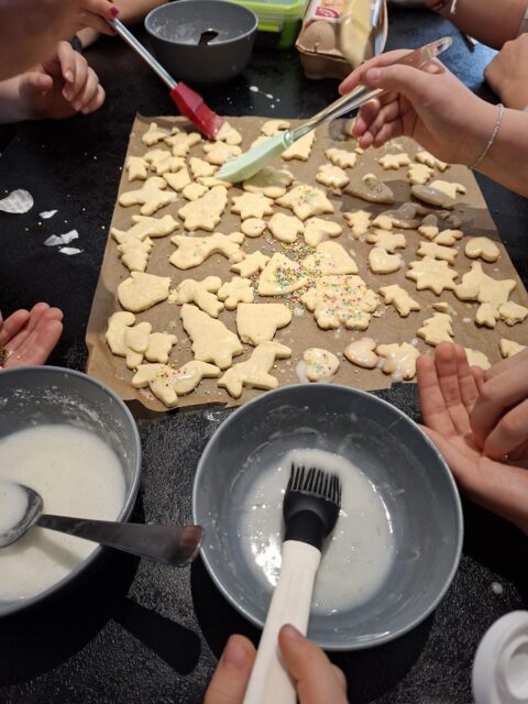 In Vorbereitung auf den Weihnachtsbasar verwandelte sich der Klassenraum der 4a in eine kleine Weihnachtsbäckerei. Gemeinsam mit Frau Wenske und Frau Böhm backten die Kinder mit viel Freude glutenfreie Plätzchen, kneteten Teig, stachen Formen aus und verzierten diese liebevoll. Teamarbeit, Vorfreude und weihnachtlicher Duft erfüllten den Raum und machten den Vormittag zu einem stimmungsvollen Gemeinschaftserlebnis.