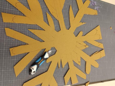Die 6. Klasse bastelte Weihnachtssterne aus Brottüten. Ein bewusst schlichtes Material wurde durch unterschiedliche Schnittmuster zu ganz vielfältigen Ergebnissen. Die Schüler*innen erlebten dabei eindrucksvoll, wie aus einfachen Mitteln individuelle Kunst entstehen kann.